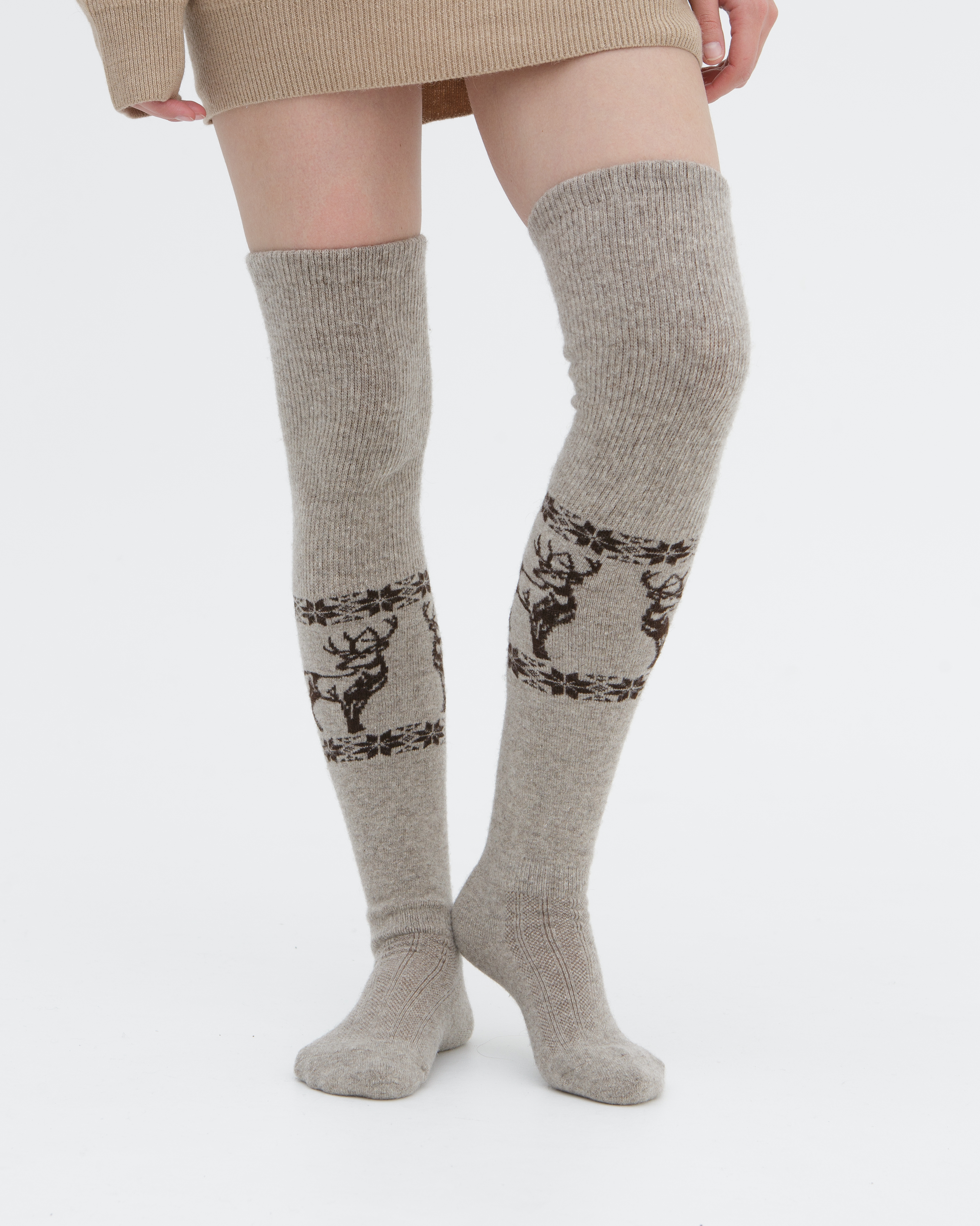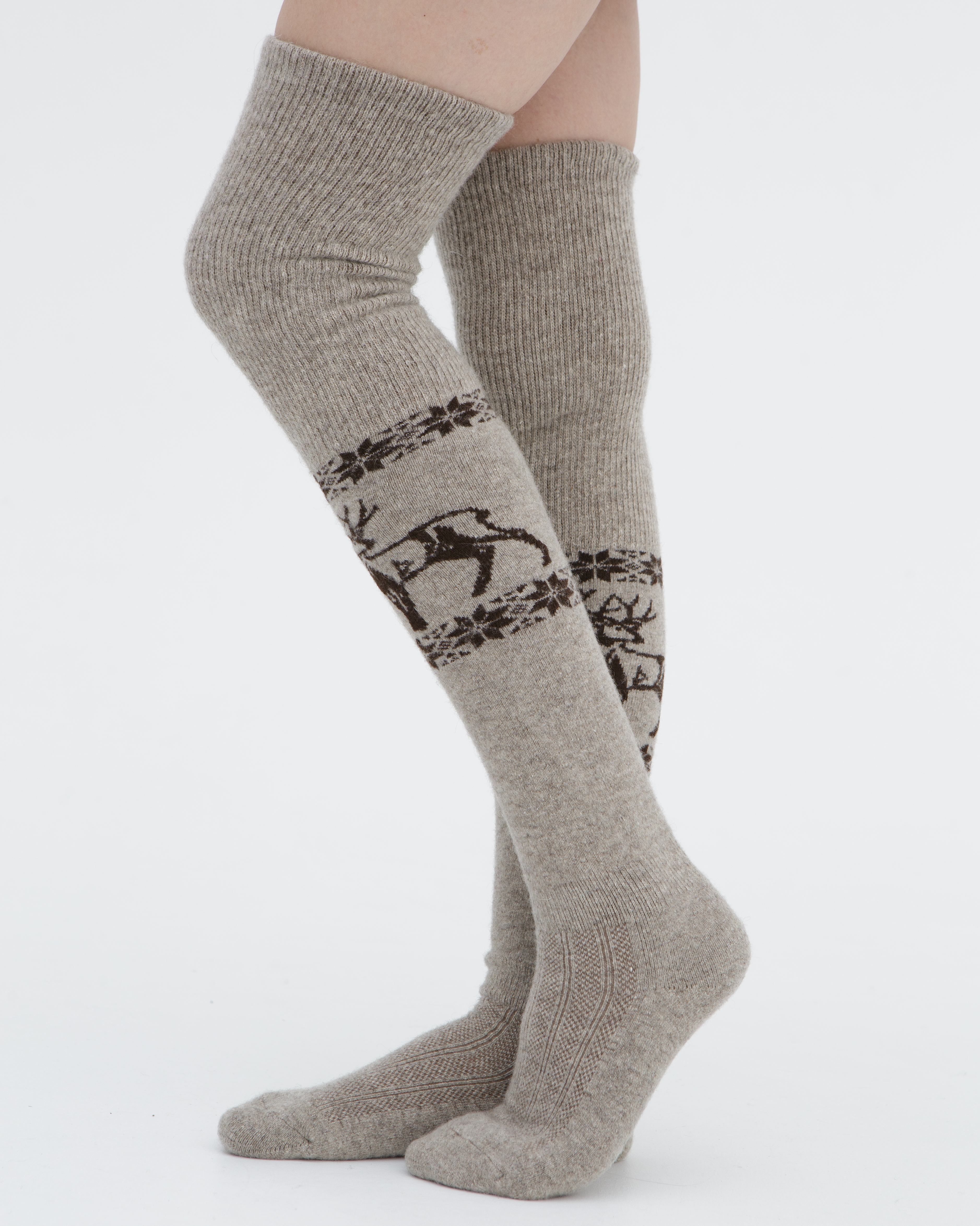 Теплые чулки из 100% шерсти с рисунком серые
