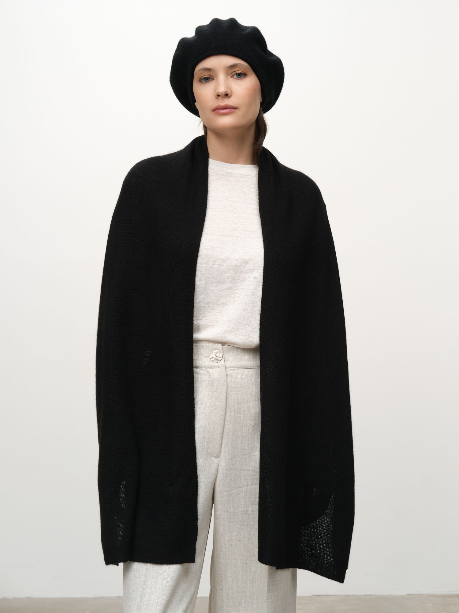 Черный цвет делает берет универсальным – он сочетается с любой одеждой и подходит под все сезоны. Носите его слегка набок для непринужденного шика или ровно для строгого образа.