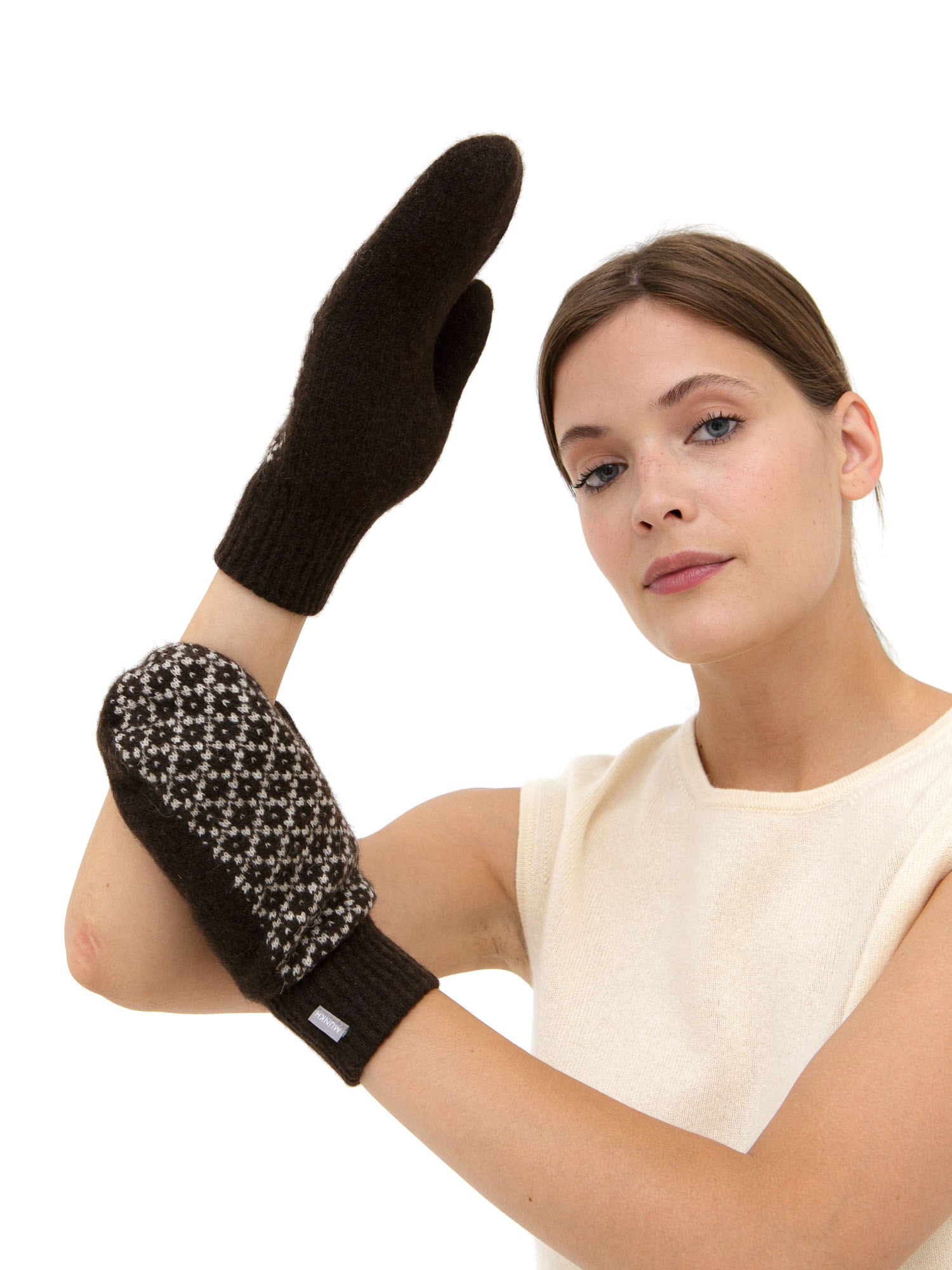 Тёплые варежки из пуха яка — это сочетание природного тепла, уюта и выразительного дизайна. Модель надежно защищает руки от холода даже в морозную погоду, а декоративный рисунок придаёт изделию стильный и запоминающийся вид. Варежки создают ощущение мягкого, естественного тепла и отлично дополняют зимний гардероб.