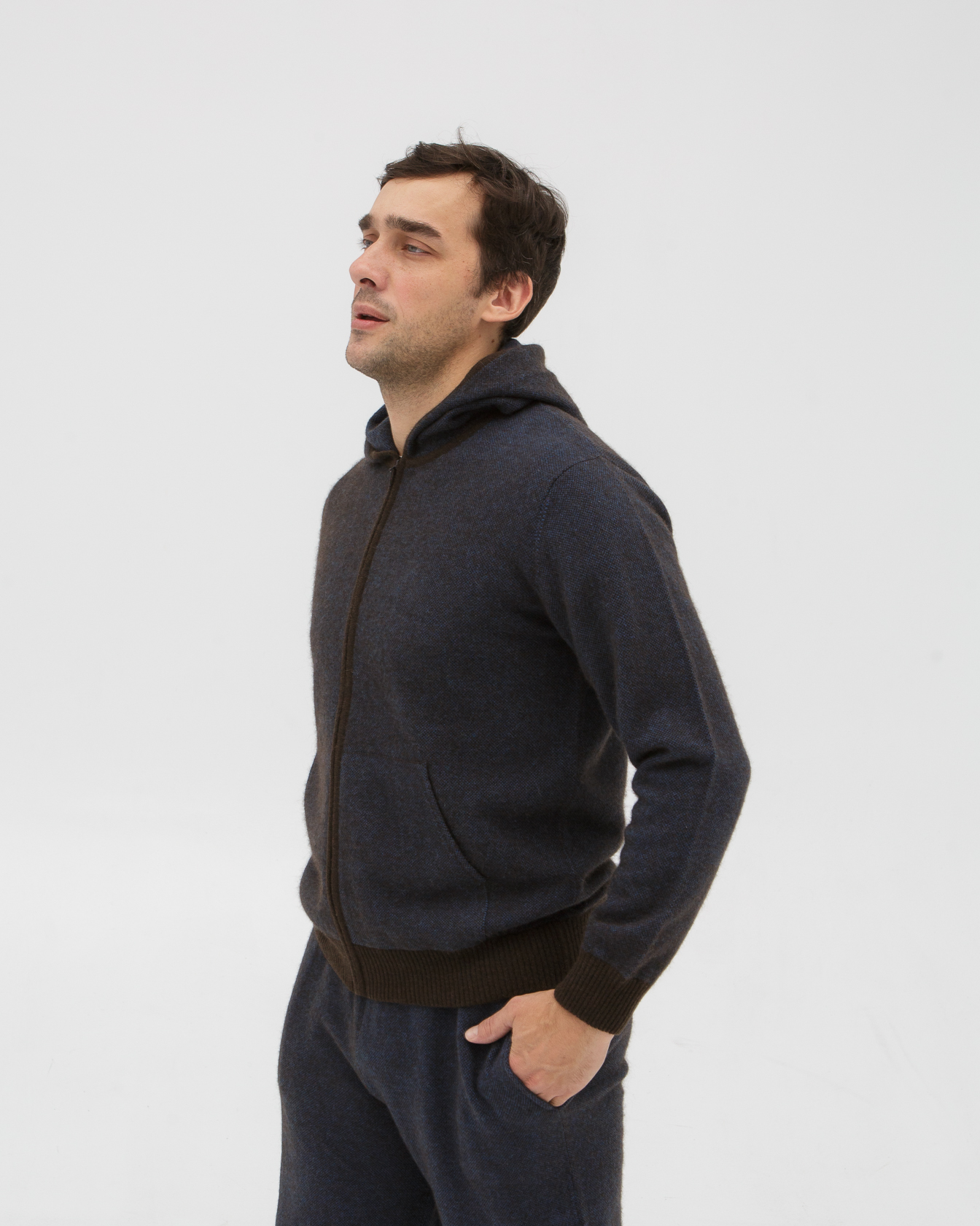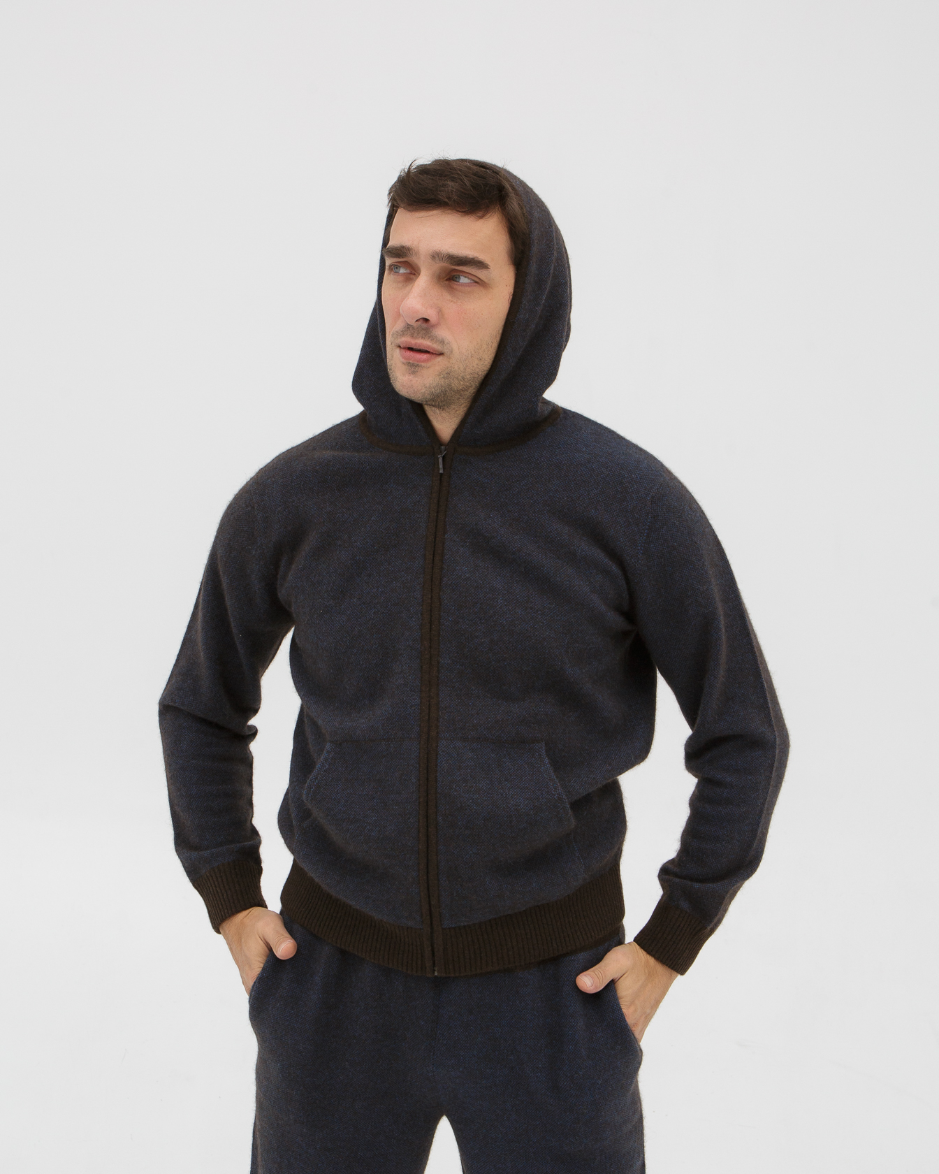 Мужской джемпер с капюшоном из пуха яка и верблюжьей шерсти — функциональная и тёплая модель для повседневного гардероба. Идеален для прохладной погоды и активного образа жизни.