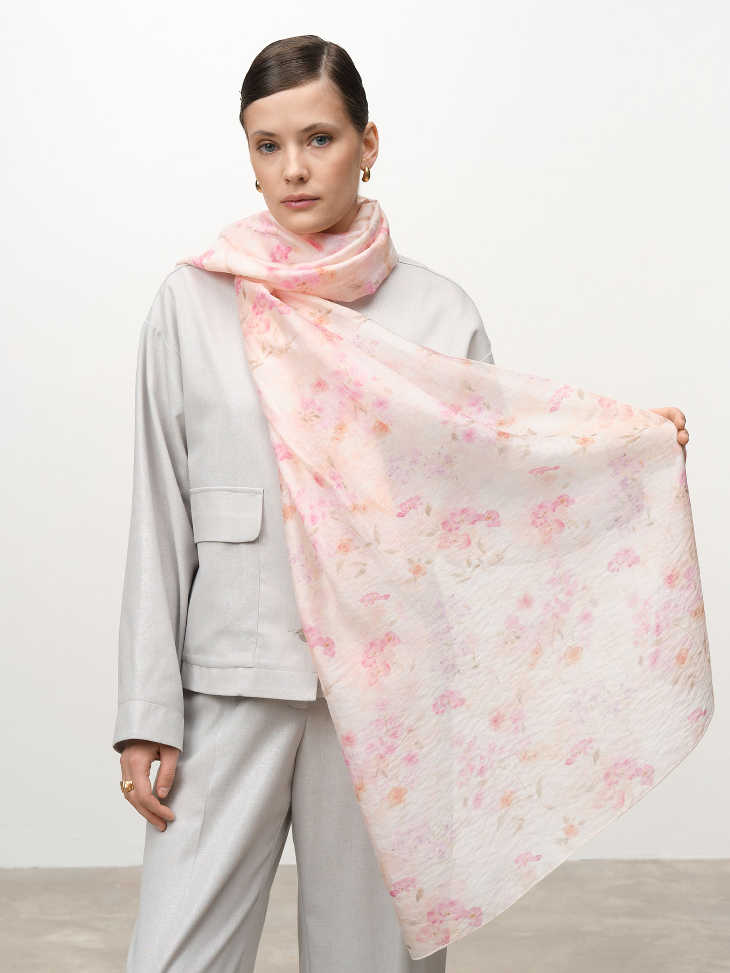 Палантин из тенселя — элегантный и воздушный аксессуар с нежным цветочным принтом, который добавляет образу утонченности и женственности.